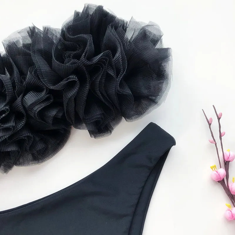 Women Fashion Mesh Lace Tube Top Bikini Two-piece Sets