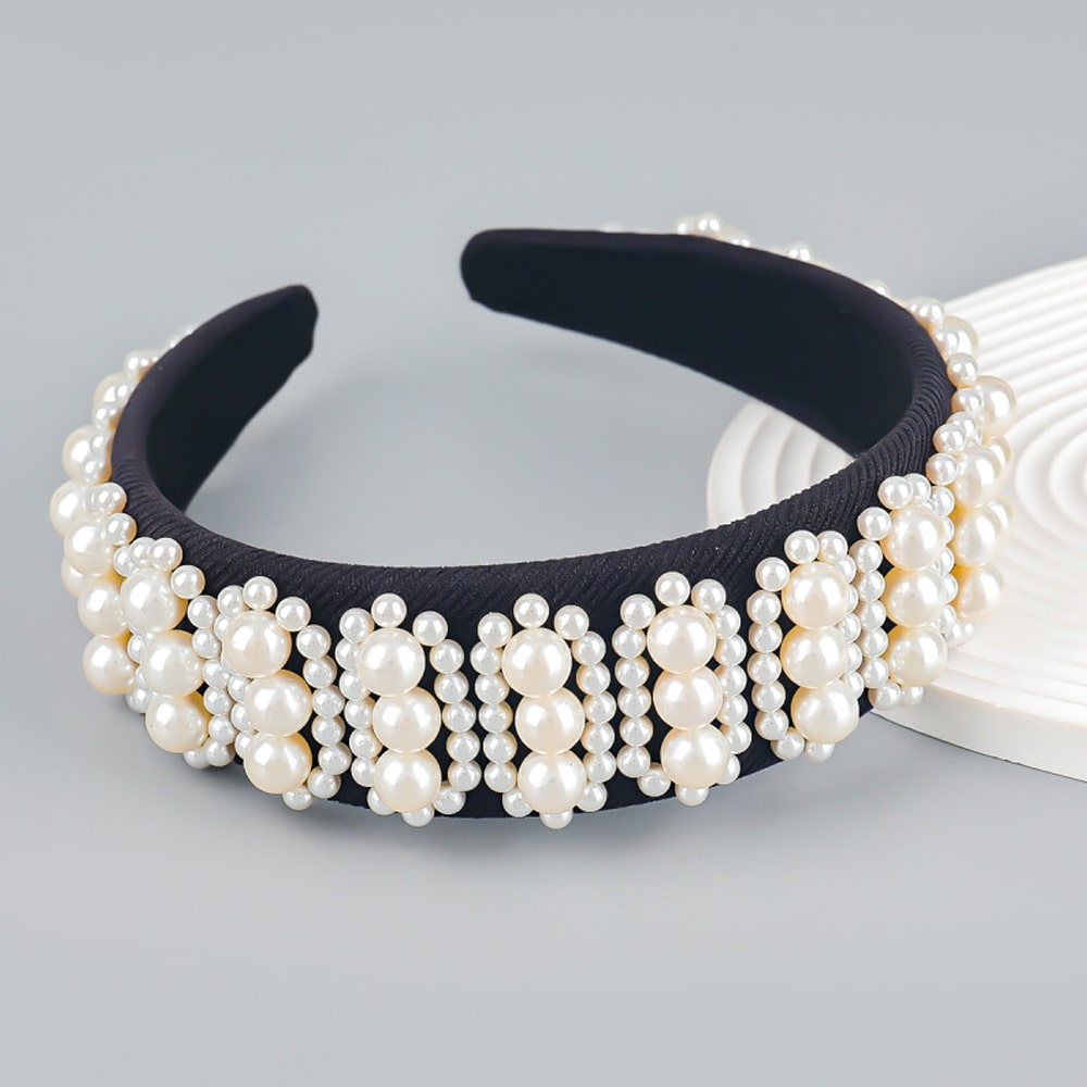 Women's Fashion Flower Imitation Pearls Wide Hair Hoop