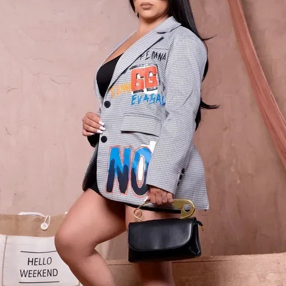 Women's Fashion Casual Graphic Printed Lapel Blazer Coat