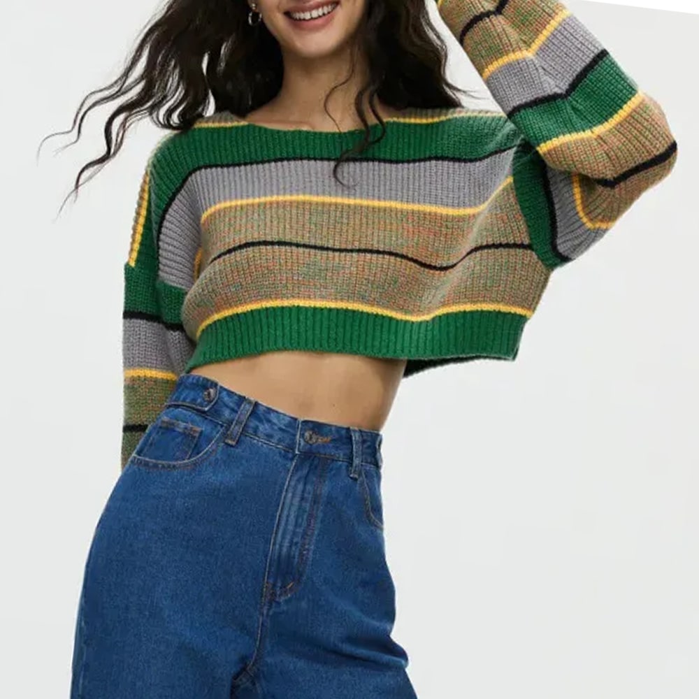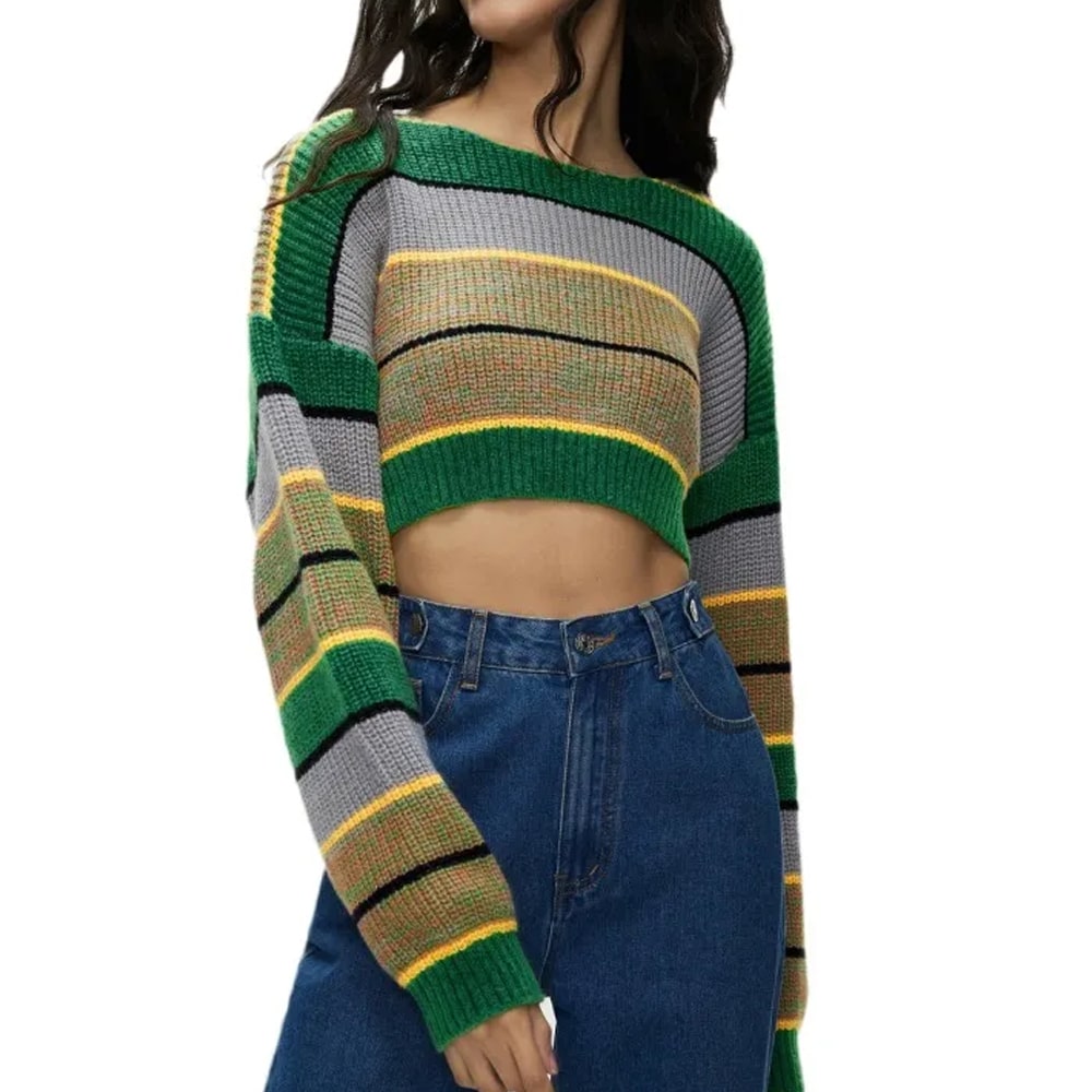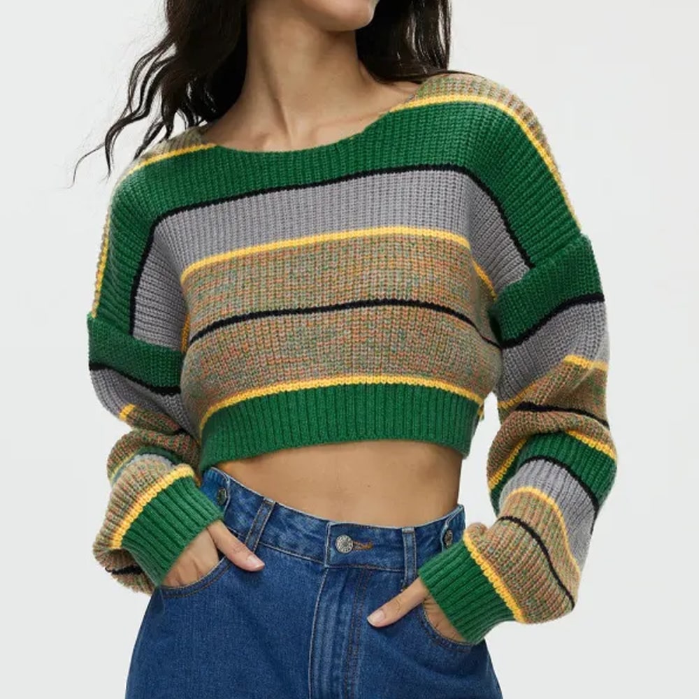 Winter Women Casual Stripe Colorblock Loose Knit Sweater