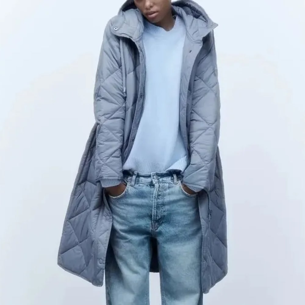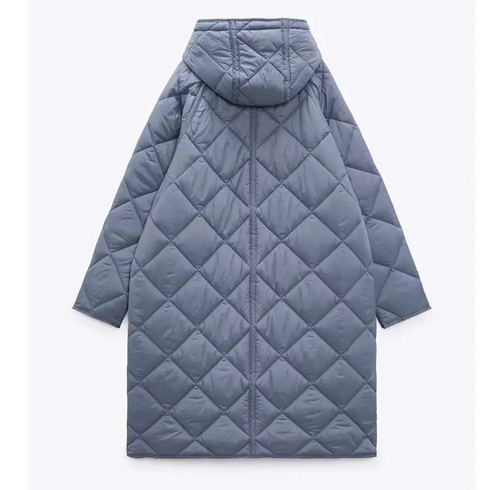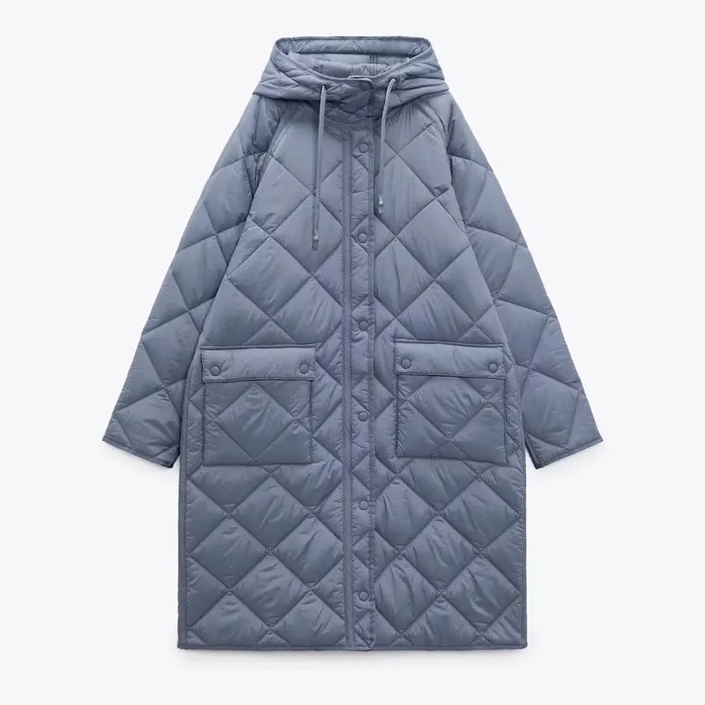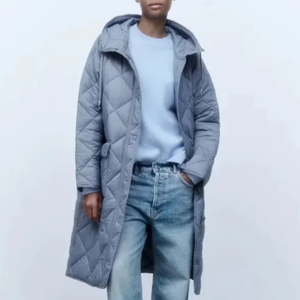 Autumn And Winter Women's Casual Warm Long Quilted Hooded Jacket Over Coat