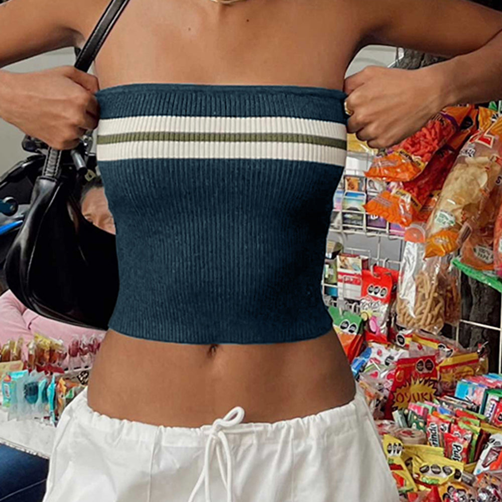 Women's Fashion Sexy Color Block Stripe Tube Vest Top